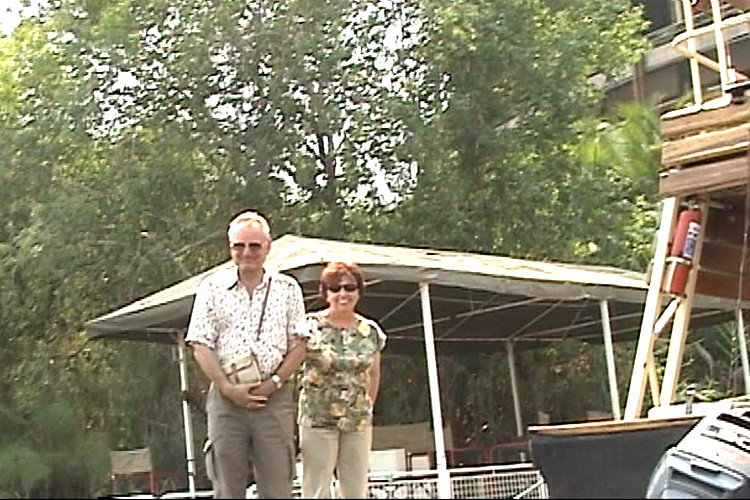 ロッジの桟橋にて、ナミビア観光の担当者がお見送り。
