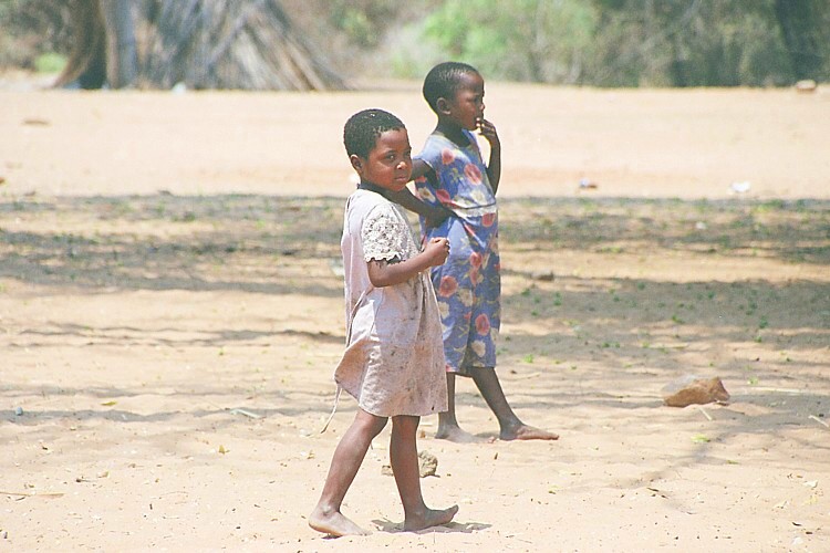 降り場ではナミビアの子供たちが、手を振ってお出迎え。