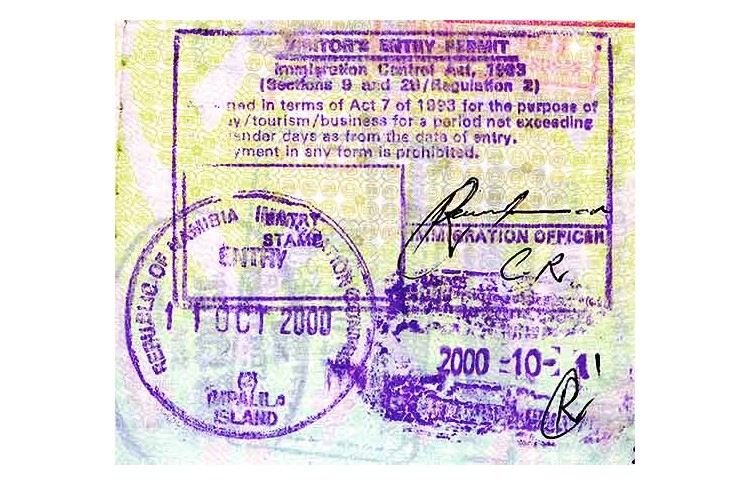 ナミビアの入国ビザと入出国スタンプ。